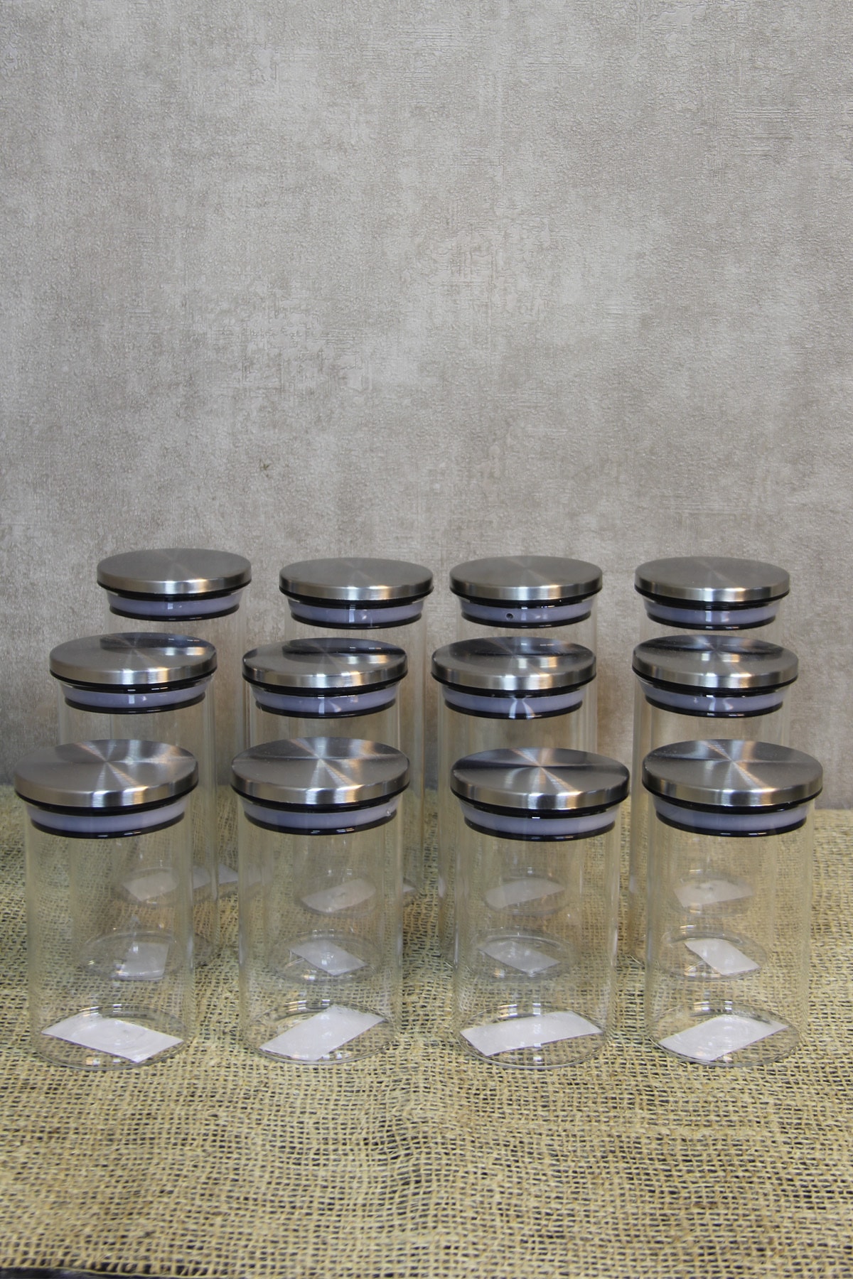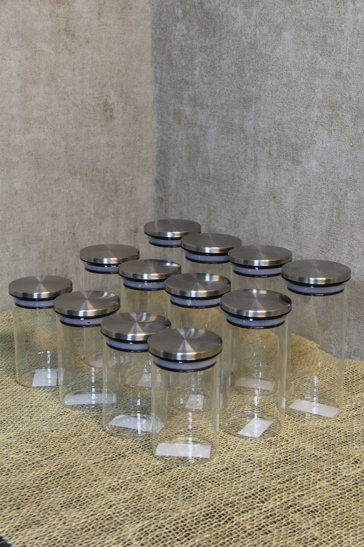 12′ Li Lüks Metal Kapaklı Baharatlık Seti, Vakumlu Borasilikat Cam 350 Ml – 300 Ml – 250 Ml