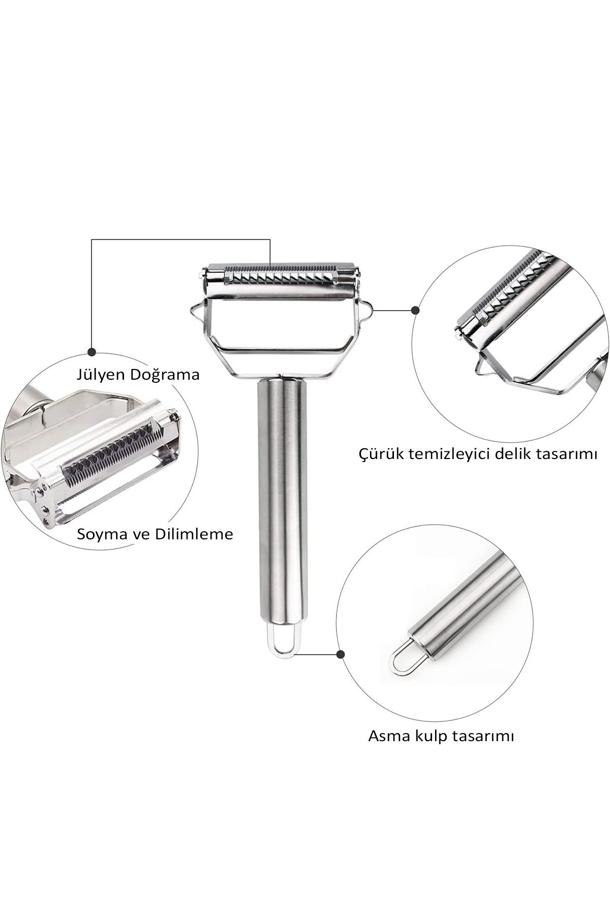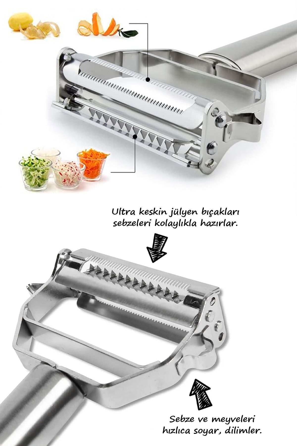 Paslanmaz Çelik Lüks Sebze, Meyve Soyacağı – Çok Amaçlı Jülyen Soyucu – Çift Foksiyonlu Soyacak Patates, Havuç Elma Soyacağı